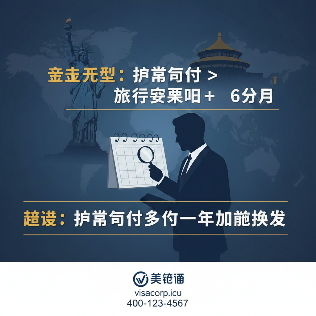 痛点直击: 您是否已经购买了前往美国的机票,但在行前才发现自己的护照有效期不足半年?这种焦虑感会让您的行程蒙上一层巨大的不确定性。Visacorp在此直接给出答案: 通常情况下,对于持有中华人民共和国普通护照的旅行者,强烈建议不要尝试在护照有效期不足六个月的情况下前往美国。